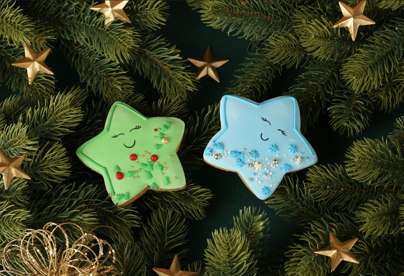 Turtă dulce cu decor din glazură de zahăr pudră şi albuş de ou.